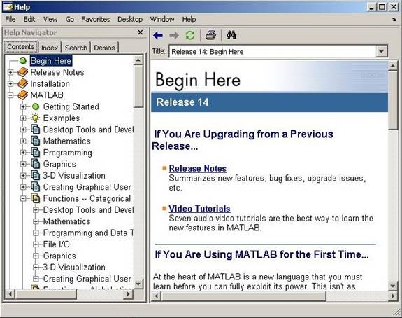 For those who want to look around and get a feel for the MATLAB computing environment by clicking and navigating through what catches their attention, a window- based help is a good option. To activate the Help window, type helpwin or helpdesk on command prompt or start the Help Browser (Fig. M1.13) by clicking the