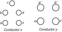 Since the strands in a conductor are identical, the current will be divided equally among the strands. Therefore the current through the strands of conductor x is I / n and through the strands of conductor y is -I/m . The total flux linkage of strand a is given by