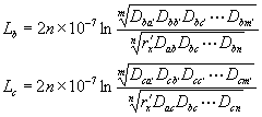 In a similar way the inductances of the other conductors are also obtained. For example,