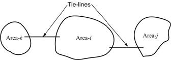 As we have in Example 5.5 that the system frequency rises when the load decreases if ΔPref is kept at zero. Similarly the frequency may drop if the load increases. However it is desirable to maintain the frequency constant such that Δf=0 . The power flow through different tie-lines are scheduled - for example, area- i may export a pre-specified amount of power to area- j while importing another pre-specified amount of power from area- k . However it is expected that to fulfill this obligation, area- i absorbs its own load change, i.e., increase generation to supply extra load in the area or decrease generation when the load demand in the area has reduced. While doing this area- i must however maintain its obligation to areas j and k as far as importing and exporting power is concerned. A conceptual diagram of the interconnected areas is shown in Fig. 5.4.