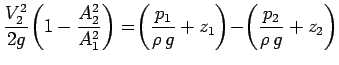 respectively, while those at the throat (Sec. 2) are V2 and p2. Now, applying
