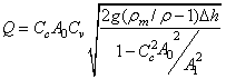 where '∆h' is the difference in liquid levels in the manometer and ρm is the