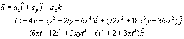 b) At 1,1,1 and t=1 acceleration vector is -