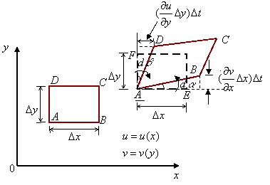 - The fluid element suffers a continuous angular deformation along with the linear deformations in course of its motion.