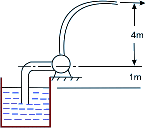 7. A fire-fighting hose with an exit nozzle diameter = 50 mm discharges water at the rate of 3000 litres per minute. The height of the nozzle exit from the pump is 4 m and water level in the sump is 1 m below the pump (see Fig. 16.7 ). Calculate the head and power developed by the pump. Assume there are no losses in the pipeline and pump.